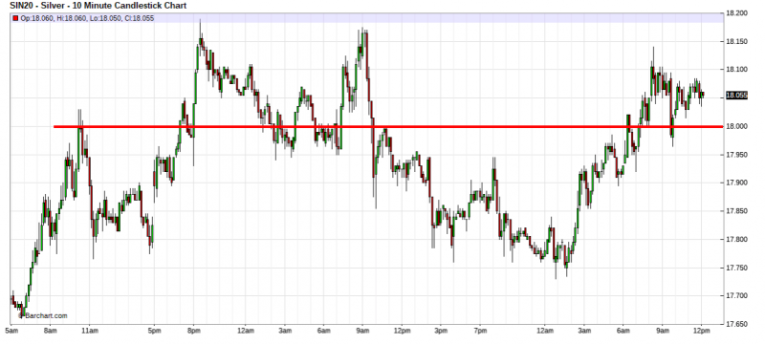 Taking these three factors into consideration, it's not surprising that price seems stalled this week right near the $18.00 level. See below: