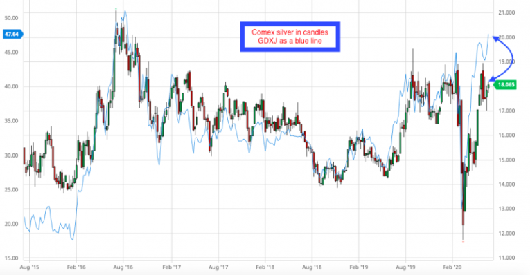 With COMEX gold getting very near new 2020 highs, concern is growing that COMEX silver is not coming along for the ride. Let's give it a few days and then check back.