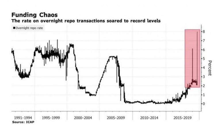 The world of fixed income trading has been extremely volatile lately. Rates have not only spiked in the Treasury market but borrowing costs in money markets have also become extremely disconcerting. The residual effects from Quantitative Tightening, which ended just this past July, are wreaking havoc on the liquidity in bond markets. Ironically, the Fed’s erstwhile rate hikes and its QT program--what Fed Chairs described as running in the background and like watching paint dry—turned out to be the catalyst for a freeze in the junk-bond market in December of 2018 and is now causing major disruption in the Repo market.