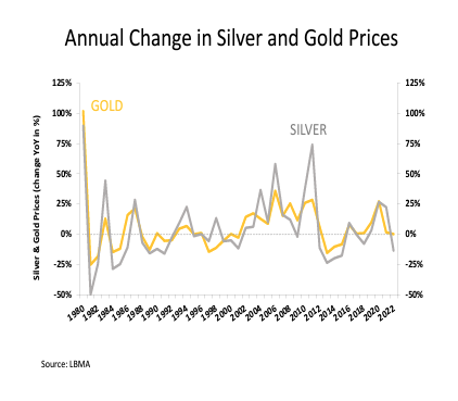 But at its core, silver is money. That brings other factors into the pricing equation such as the strength of the dollar or the trajectory of interest rates. That means silver typically moves with gold, especially over the long run.