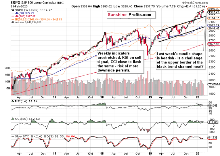 Summing up, the medium-term S&P 500 outlook has deteriorated, and more downside remains probable. This is also apparent on the daily chart. It’s the breakdown first below the rising wedge, then below the rising support line. There’re also notable divergencies between RSI, CCI and stock prices. Coupled with the volatility examination and today’s bearish gap, it points to more to come in this correction before it’s over. Yet, we’re of the opinion that a favorable setup is approaching to get back in on the long side to reap more fruits of this stock bull market. It remains intact and much higher prices are to come. Our aim is to let the many bullish factors in this stock bull market keep working to our benefit.