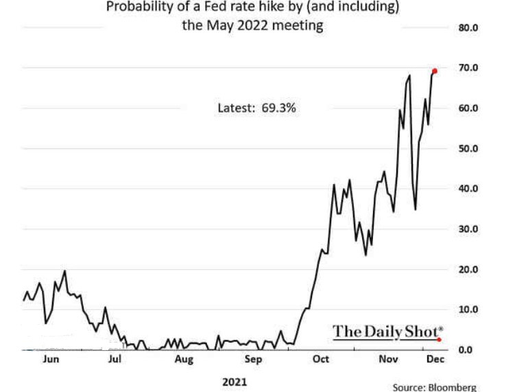 In addition, after expectations for September were pulled forward to July, and then expectations for July were pulled forward to June, now, the probability of a Fed rate hike in May 2022 has reached ~69%.
