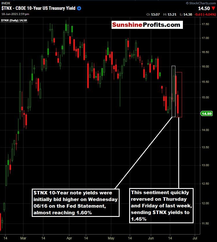 Figure 1 - $TNX Ten-year note treasury yield February 10, 2021 - June 18, 2021, Daily Source stockcharts.com