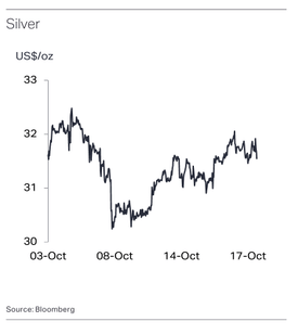 After approaching $33 an ounce in early October, silver retreated to below $31 an ounce before rebounding to above $32.