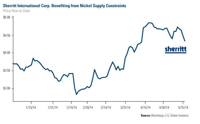 Sherritt International Corp is another Canadian based resource company. It has interests in nickel, coal and cobalt mining. Nickel prices were under tremendous pressure last year due to oversupply but have surged this year since Indonesia banned exports of unprocessed ore in an effort to encourage domestic industrial development. Indonesia is the world’s leading supplier of high-grade nickel ore, which is used to make stainless steel. Sherritt has benefited from this drastic change in the nickel market.
