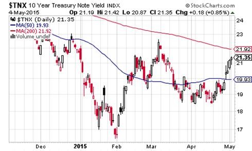 The chart on the top of the next page may back up that trend. The TNX 10 year bond yield index has risen over 30 basis points in the past couple of weeks. Not a huge move but indicative of bond traders that think they have seen the bottom when it comes to yields.
