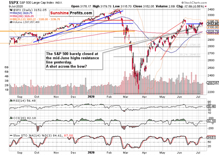Wednesday's efforts to break above the mid-June highs got thoroughly tested yesterday, and the stock bulls barely managed to stage a comeback. Is that a warning shot fired by the bears, or a show of strength by the bulls? I think I have an answer for that – and it might surprise you. It's that it's neither – neither the bears, nor the bulls did really show they were strong yesterday.
